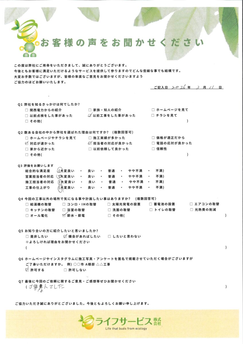 以前のエコキュート工事に続き、この度は食洗機の入替をお任せいただき、心より感謝申し上げます。